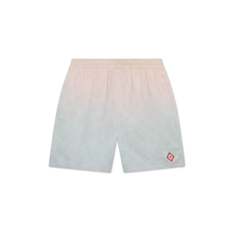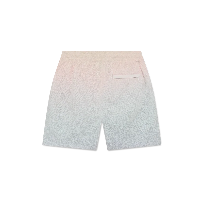 Die Track-Shorts mit Laser-Detail im Farbverlauf sind ein Sportbekleidungsmodell aus laserperforiertem Taftstoff mit einem Futter im Farbverlauf. Abgerundet durch den Diamant-Logo-Aufnäher des Hauses, einen elastischen Bund mit innenliegendem, goldverziertem Kordelzug, Seitentaschen und eine Gesäßtasche mit Reißverschluss.