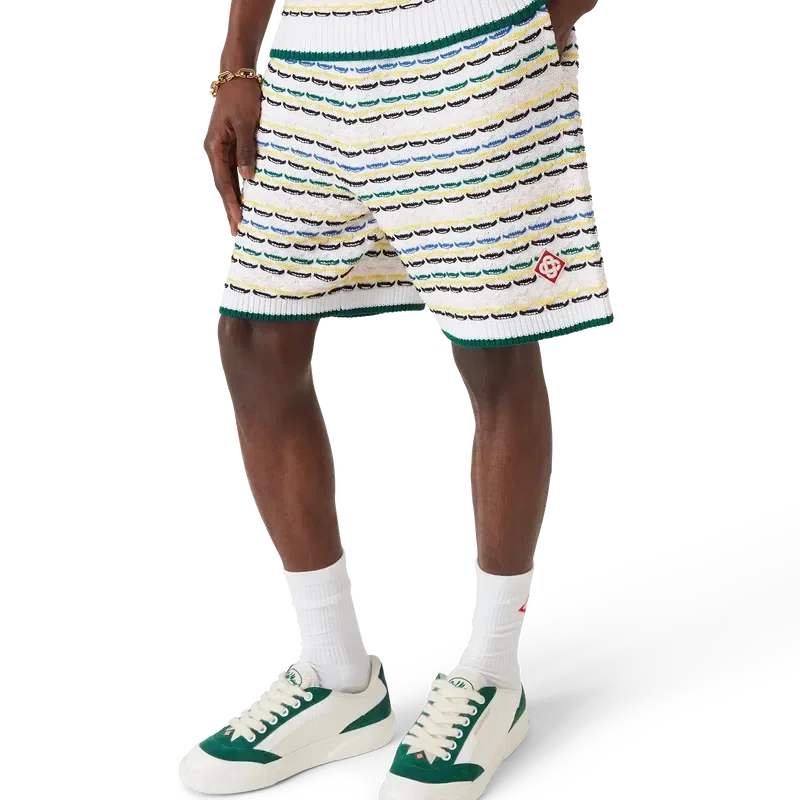 Die Tuck-Stitch-Shorts sind ein Strickmodell mit dem charakteristischen Rautenlogo des Hauses. Abgerundet durch einen gerippten, elastischen Bund, einen Kordelzug, gerippte Saumdetails und eine lockere Silhouette. Entworfen, um mit dem passenden Tuck-Stitch-Hemd getragen zu werden.