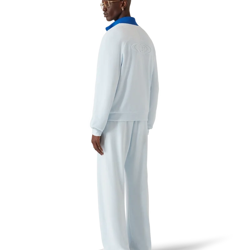 Die Velours-Jogginghose ist ein Sportmodell mit geradem Bein und dem Warped-Logo des Hauses. Mit elastischem Bund, Kordelzug, Paspeltaschen vorne, einer Paspeltasche hinten mit Reißverschluss und Biesen an der Vorderseite.