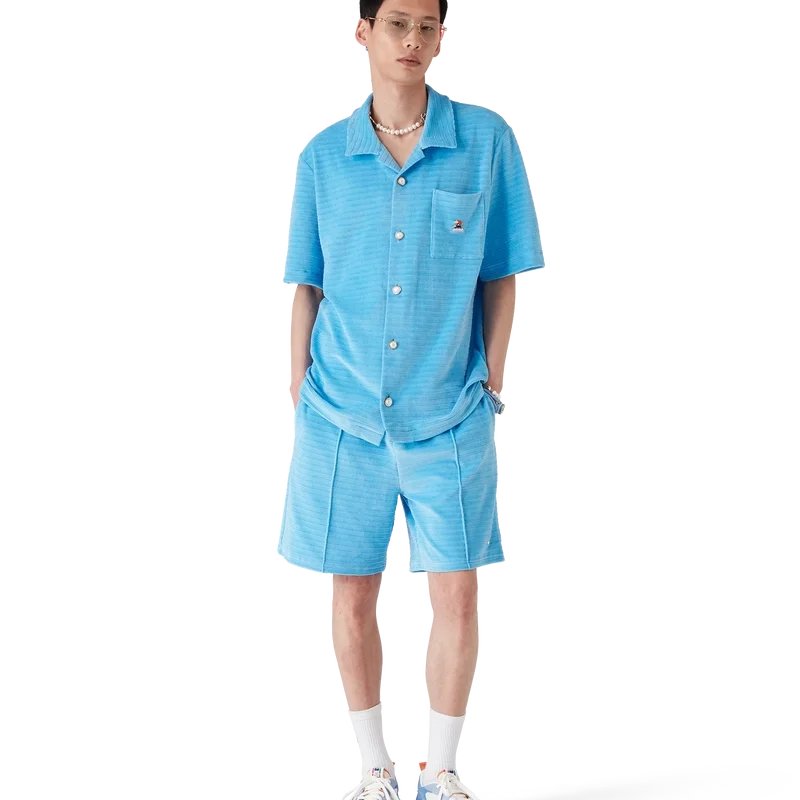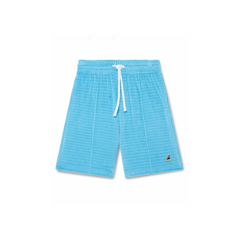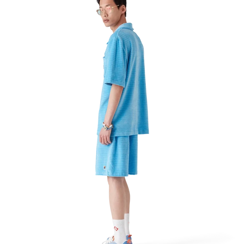 Die Velours-Streifen-Shorts sind ein klassisches Design aus gestreiftem Veloursstoff. Mit elastischem Bund, Kordelzug, Biesen an der Vorderseite, einer Gesäßtasche mit Reißverschluss und seitlichen Eingrifftaschen.