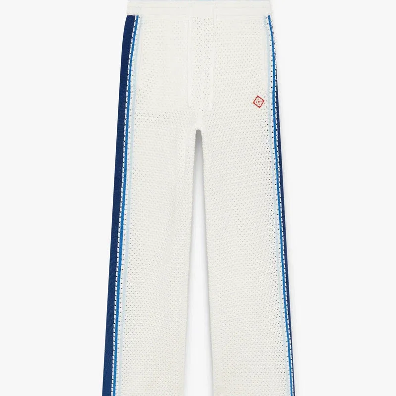 Die gestreifte Mesh-Jogginghose hat ein raffiniertes Design mit geradem Bein und Streifenverzierungen an den Seiten. Abgerundet wird sie durch einen elastischen Bund mit gestreiftem Rand, einen Kordelzugverschluss und Vordertaschen mit Reißverschluss.