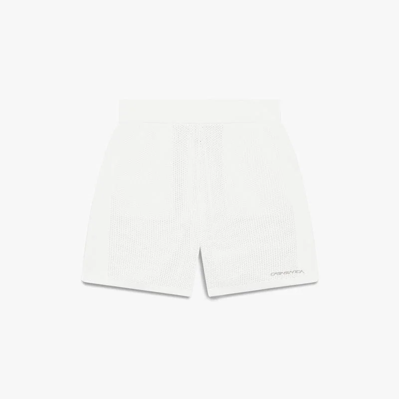 Die weißen Mesh-Shorts zeichnen sich durch ein raffiniertes Design aus und sind mit dem Warped-Logo des Hauses am Bein versehen. Abgerundet durch einen elastischen Bund, einen Kordelzug, Nahttaschen und gestreifte Saumdetails.