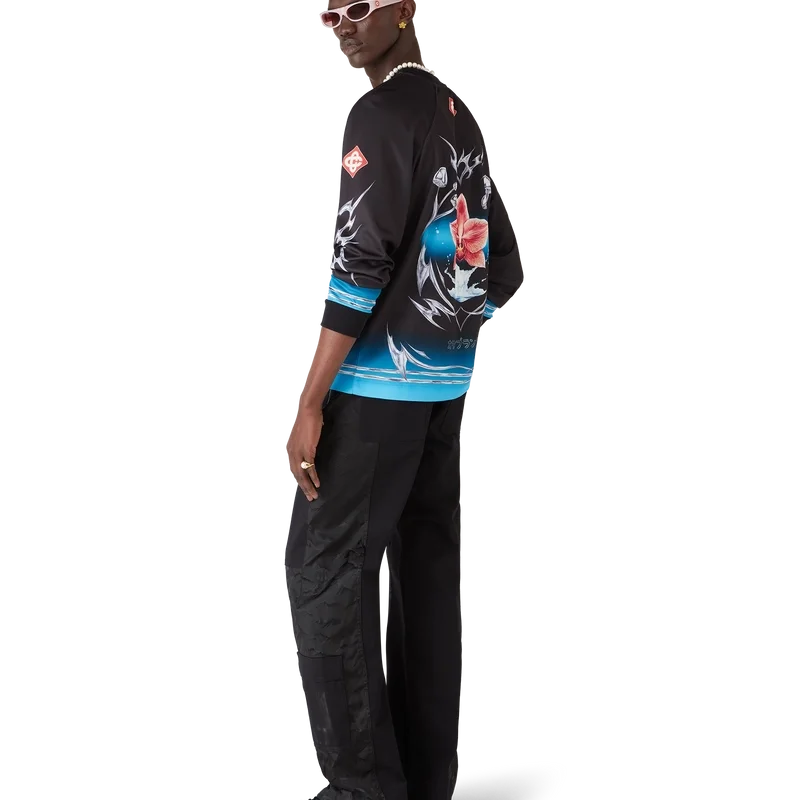 Das Blade Langarm-Fußballtrikot ist ein bedrucktes Design mit dem Blade-Motiv dieser Saison, das mit dem Kontrast zwischen zwei gegensätzlichen Empfindungen spielt – der Schärfe der Klinge und dem kalten, silbernen Chrom, kontrastiert mit der Wärme der Natur, wie den kräftigen Rosa- und Rottönen einer Orchideenblüte. Die Hinzufügung von Wassertropfen verleiht dem Design eine frische, klare Note. Abgerundet durch gerippte Bündchen und Kragen.