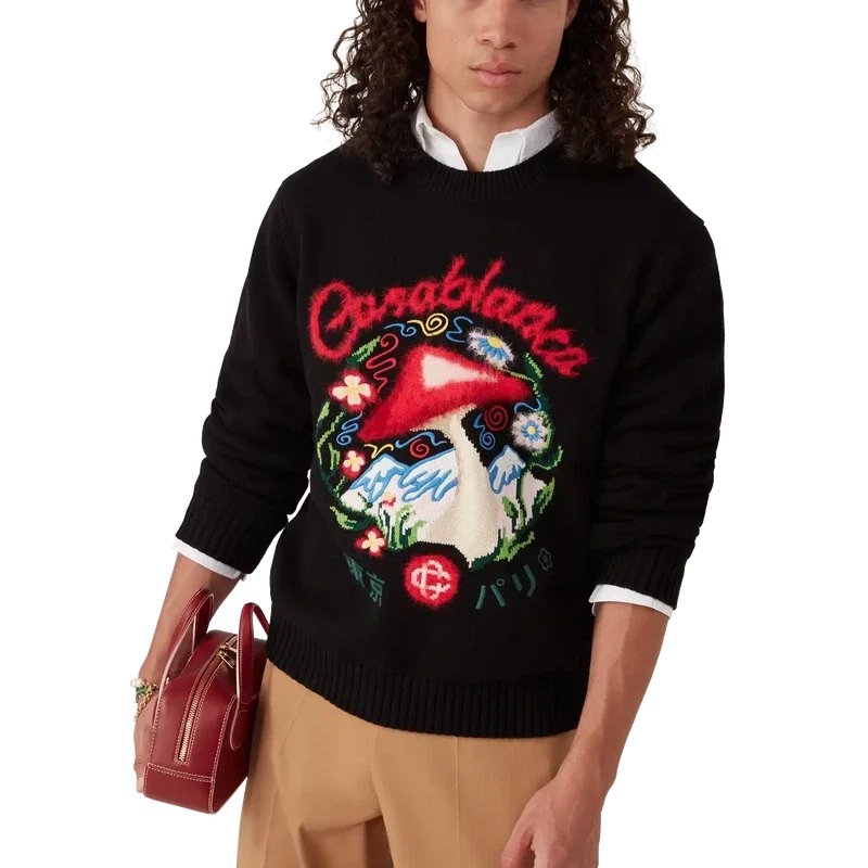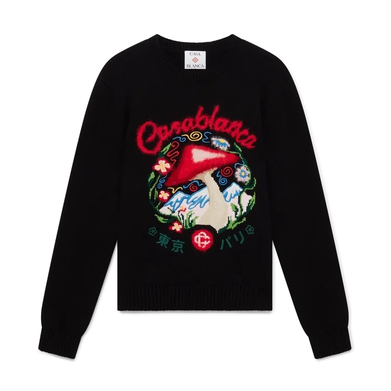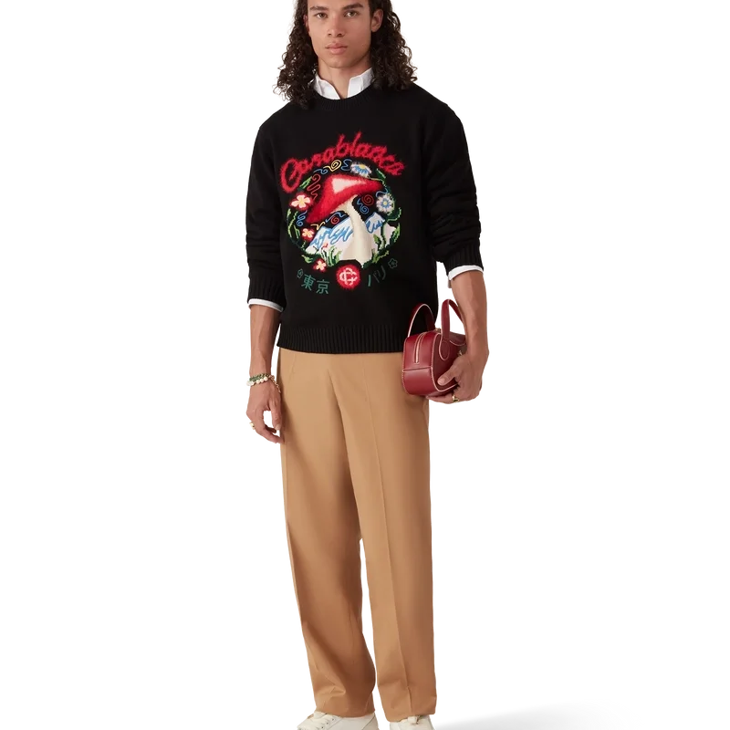 Der Baumwollpullover mit Pilzstickerei ist ein langärmeliges Modell mit einem der charakteristischen Designelemente des Hauses – dem Pilz – und besteht aus Baumwollstoff. Abgerundet wird er durch einen klassischen Rundhalsausschnitt sowie gerippte Bündchen und einen gerippten Saum.