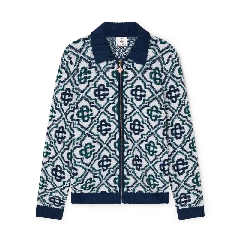 Der Monogram Knit Zip Jumper ist ein klassisches Design mit dem charakteristischen Monogramm des Hauses, gefertigt aus einem Wollmischgewebe. Mit Reißverschluss vorne, kontrastierendem geripptem Kragen, Bündchen, Saum und Seitentaschen – entworfen für eine schmale Passform.