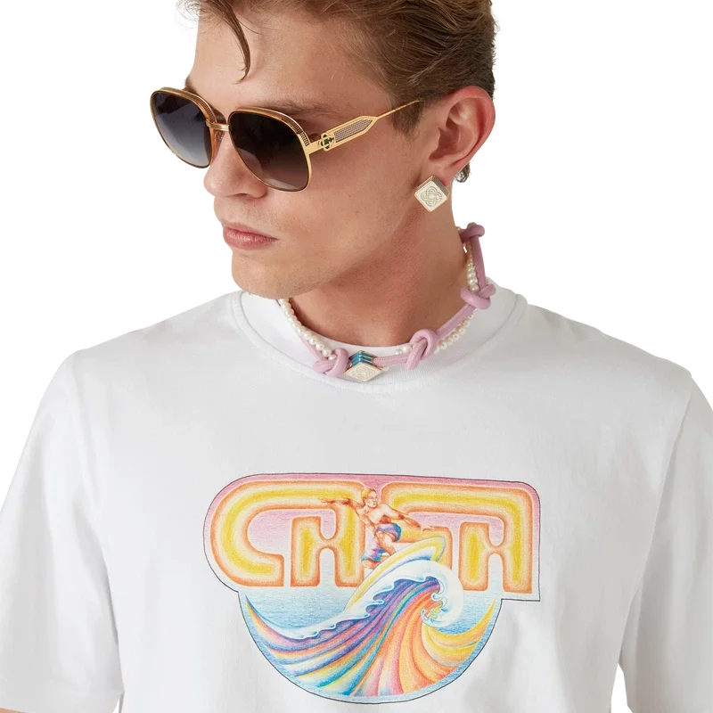 Das Casa Surf T-Shirt ist ein bedrucktes Kurzarm-Modell aus Bio-Baumwollstoff mit saisonalen Motiven, die von sonnengebleichten Vintage-Surfboards aus den 70er Jahren inspiriert sind. Abgerundet durch einen klassischen Rundhalsausschnitt.