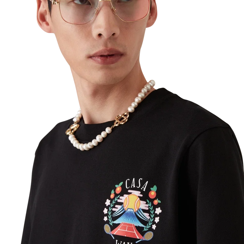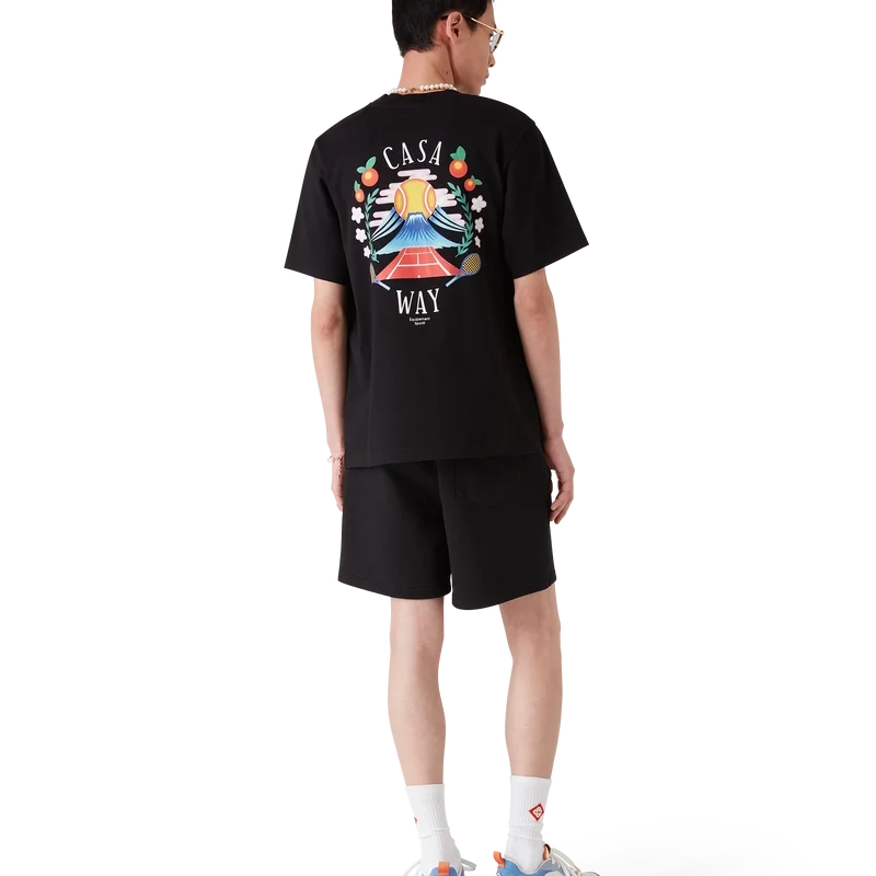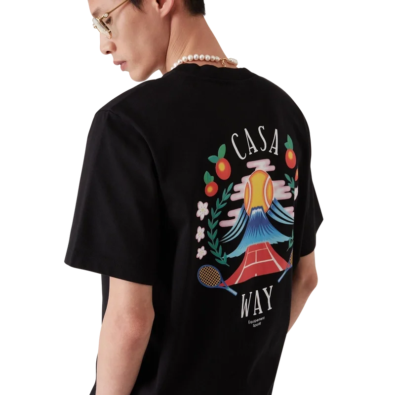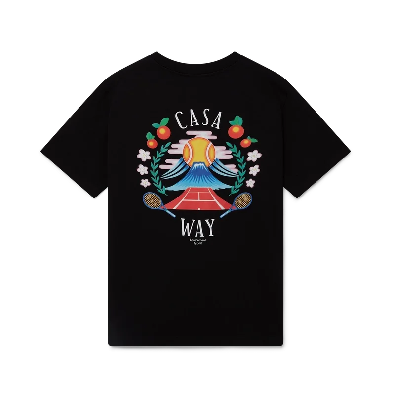 Das Casa Way Mountain T-Shirt ist ein kurzärmeliges Modell aus Bio-Baumwollstoff und zeigt das saisonale Design des Hauses, das an die Geschichte des von uns erforschten ikonografischen Stils anknüpft – digital erstellte Grafiken, die unser Berg-Logo mit unterschiedlichen Linien und Farbverläufen präsentieren und so ein starkes Branding schaffen. Abgerundet durch einen klassischen Rundhalsausschnitt.