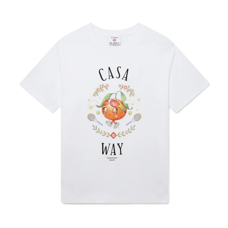 Das Casa Way Orange Mascot T-Shirt ist ein bedrucktes Kurzarm-Design mit saisonalen Motiven des Kawaii Orange – diese Figur ist eine weitere Schlüsselfigur in unserem Universum und trägt Casa-Accessoires, eine Brille und Sneakers. Abgerundet durch einen klassischen Rundhalsausschnitt.