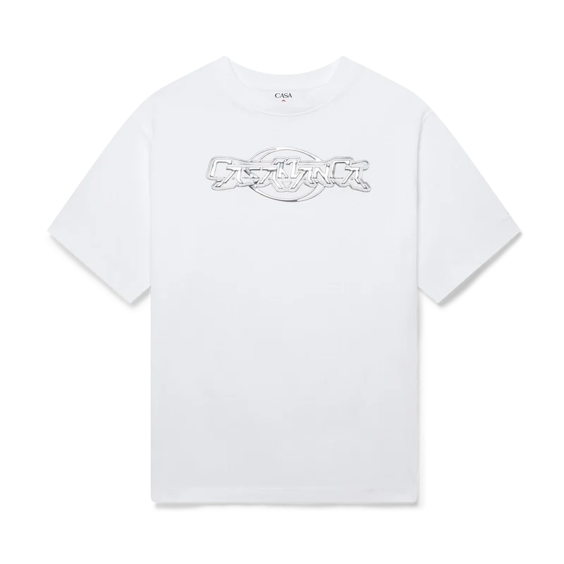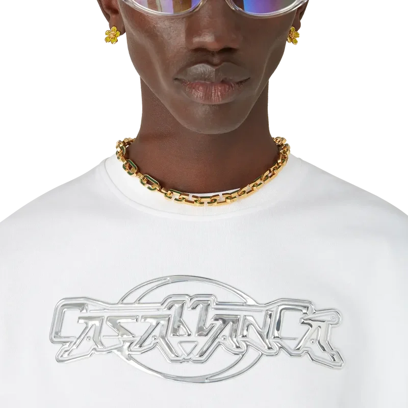 Das Casablanca Chrome Oversized T-Shirt ist ein kurzärmeliges Modell aus Bio-Baumwollstoff mit dem Chrome-Text-Casablanca-Logo. Abgerundet durch einen klassischen Rundhalsausschnitt.