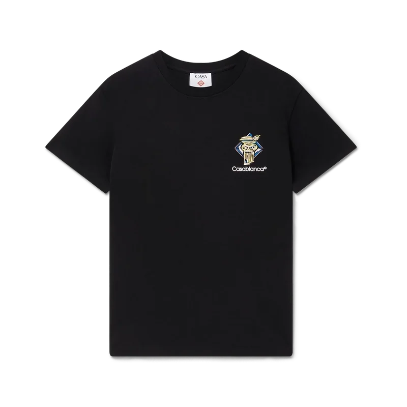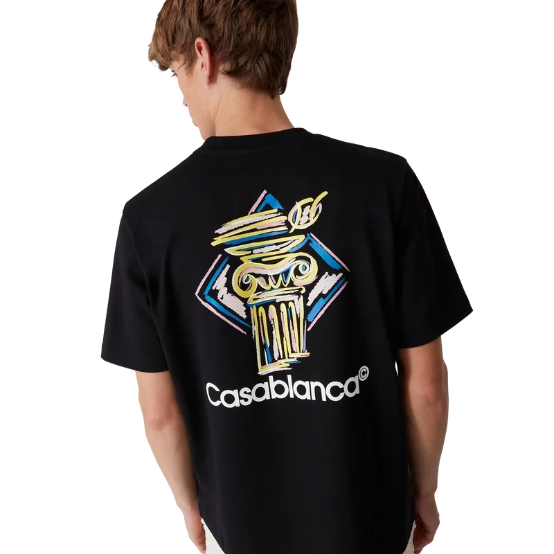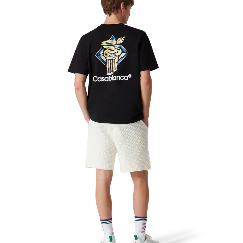 Das Diamond Column T-Shirt ist ein kurzärmeliges, bedrucktes Design aus Bio-Baumwollstoff mit der für das Haus typischen Buntstift-Ikonografie einer Säule. Abgerundet durch einen klassischen Rundhalsausschnitt und das Casablanca-Logo.