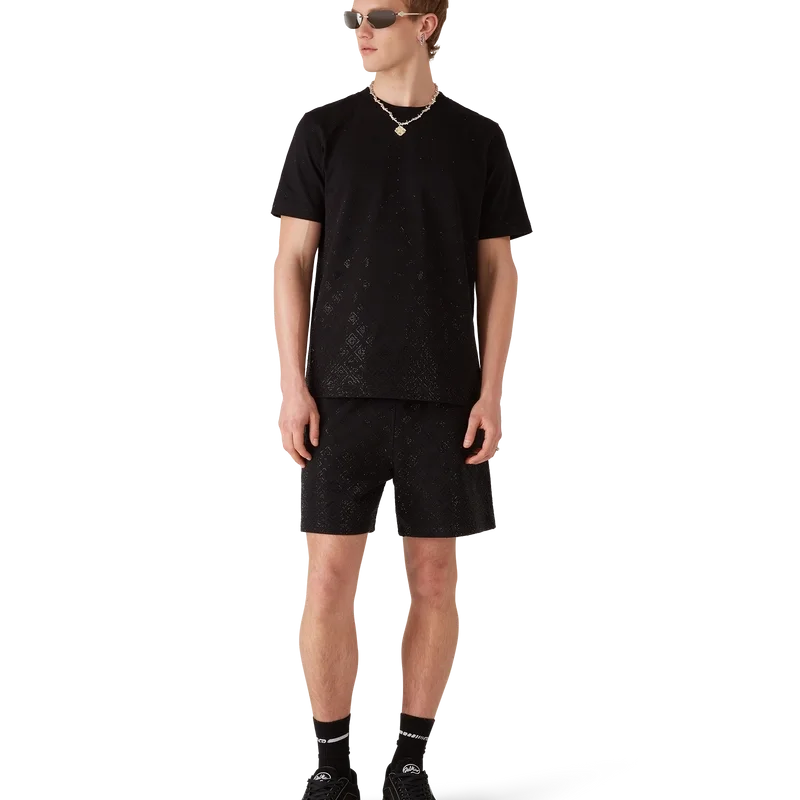 Das Kristall-Monogramm-Logo-T-Shirt mit kurzen Shorts ist ein hochwertiges Jersey-Modell mit kurzen Shorts, das mit dem aus Kristallen gefertigten Degrade-Monogramm des Hauses verziert ist. Abgerundet wird es durch einen klassischen Rundhalsausschnitt und eine lockere Silhouette.