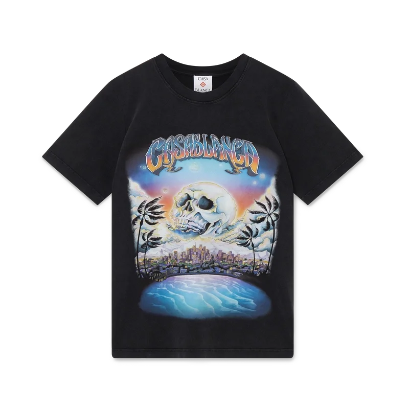 Das La Pramonition Crystal T-Shirt ist ein bedrucktes Kurzarm-Design aus Bio-Baumwollstoff mit charakteristischem Artwork, inspiriert von einer unheimlichen Vision der Skyline von La bei Nacht, mit UFO-Elementen, die an Vintage-Sci-Fi-Inspirationen anknüpfen. Mit klassischem Rundhalsausschnitt.