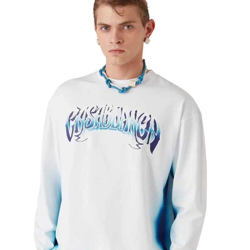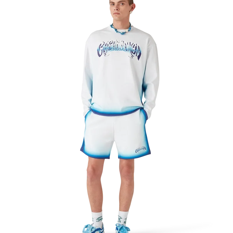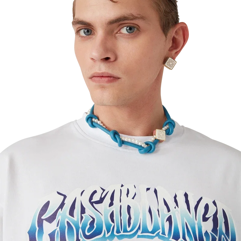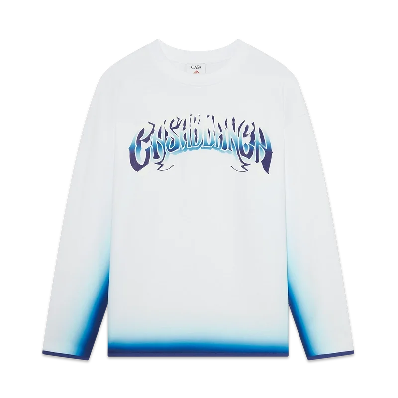 Das Blue Fade Langarm-T-Shirt ist ein bedrucktes Design aus Bio-Baumwollstoff und verfügt über eine handgezeichnete Typografie des Casablanca-Logos, inspiriert von der in Tattoos verwendeten gotischen Schriftart. Abgerundet durch einen klassischen Rundhalsausschnitt.