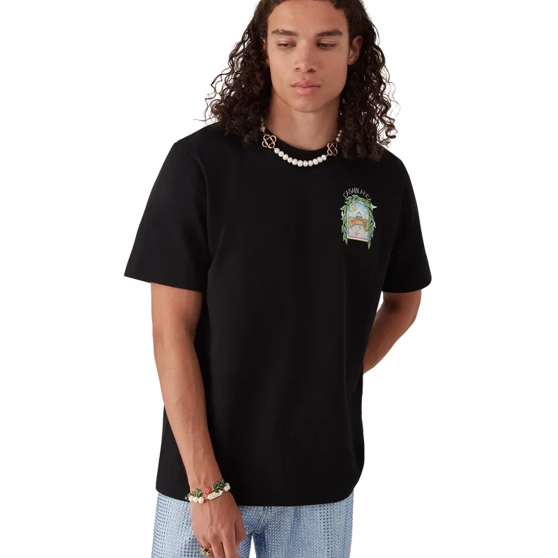 Das L’arche De Tennis T-Shirt ist ein kurzärmeliges Design mit einem saisonalen Siebdruck-Motiv, bei dem der freie Fluss der Natur auf die Struktur des von Menschenhand geschaffenen Designs trifft – den Bogen, ein abstraktes Symbol der Stärke. Abgerundet durch einen klassischen Rundhalsausschnitt.