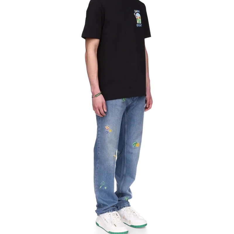 Das Le Jeu Colora T-Shirt ist ein bedrucktes Design, inspiriert von afro-kubistischen Kunstwerken, geprägt von kühnen Malereien und Kubismus, wie man sie in Nigeria findet. Hergestellt aus Bio-Baumwolle, mit dem Hausdesign auf dem Rücken und der linken Brustseite, abgerundet durch einen klassischen Rundhalsausschnitt.