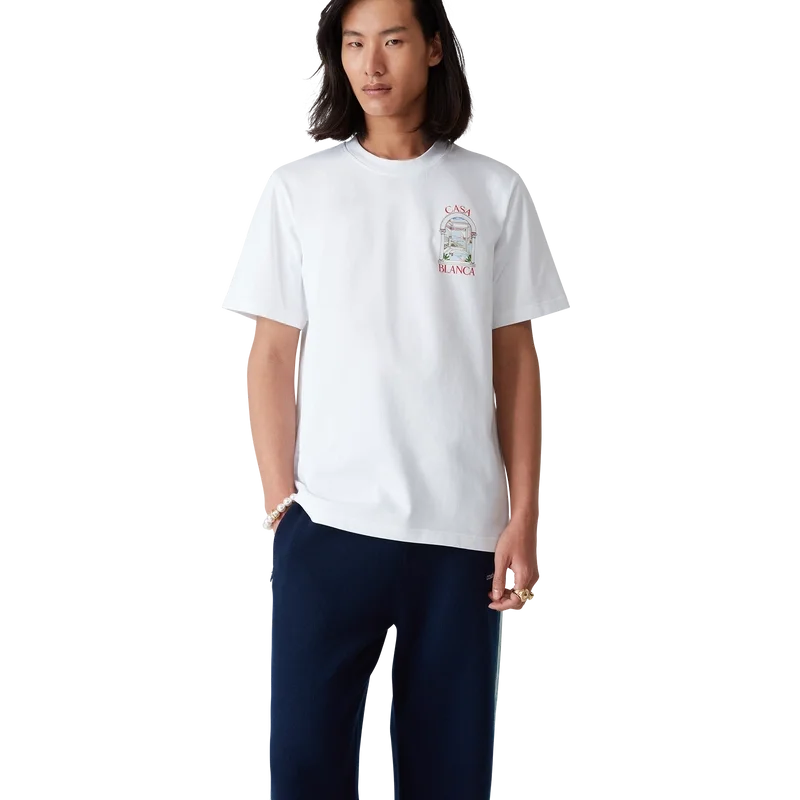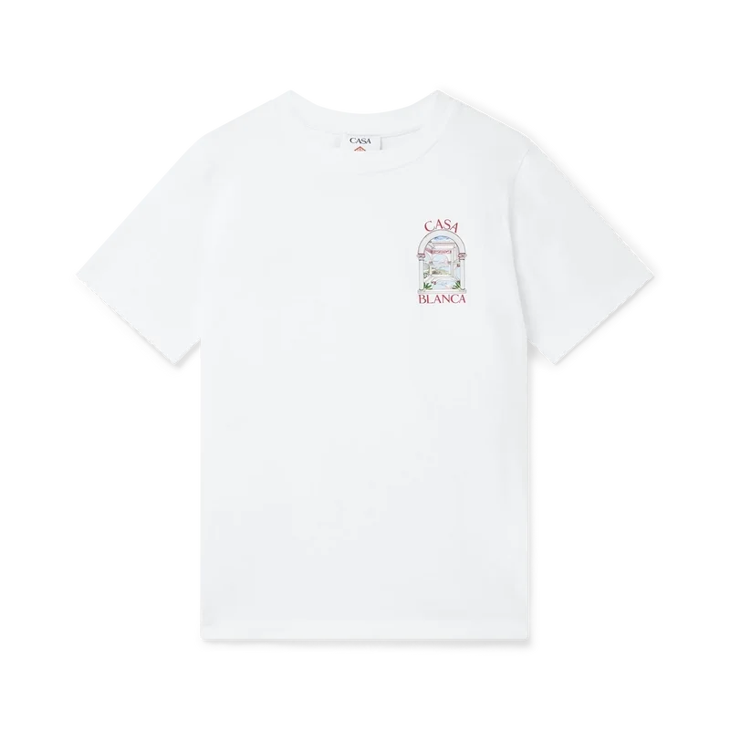 Das Le Passage T-Shirt ist ein kurzärmeliges Modell aus Bio-Baumwolle mit dem saisonalen Artwork des Hauses – es präsentiert vier verschiedene Dimensionen, die mit Perspektiven und Architektur spielen. Abgerundet durch einen klassischen Rundhalsausschnitt.