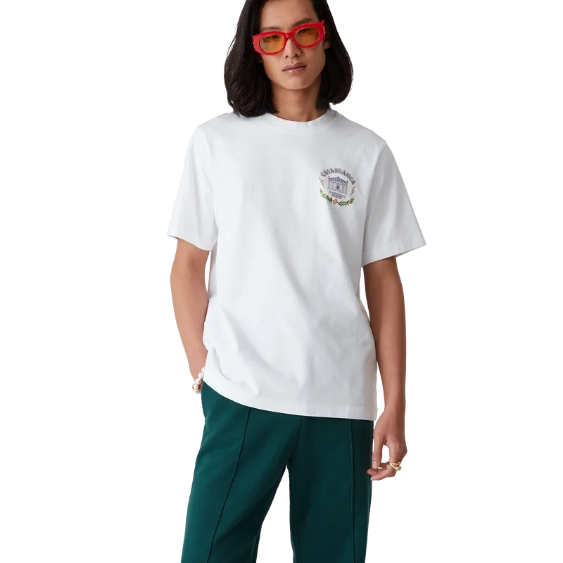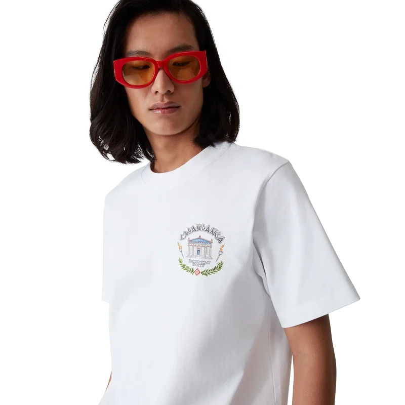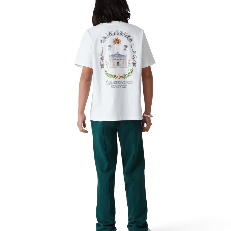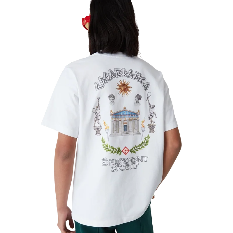 Das Le Temple Du Sport T-Shirt ist ein kurzärmeliges, bedrucktes Modell aus Bio-Baumwolle, das mit dem saisonalen Design des Hauses verziert ist, inspiriert von der fortwährenden Auseinandersetzung mit der klassischen Schönheit und dem zeitgenössischen Charme des antiken Griechenlands. Abgerundet wird es durch einen klassischen Rundhalsausschnitt.