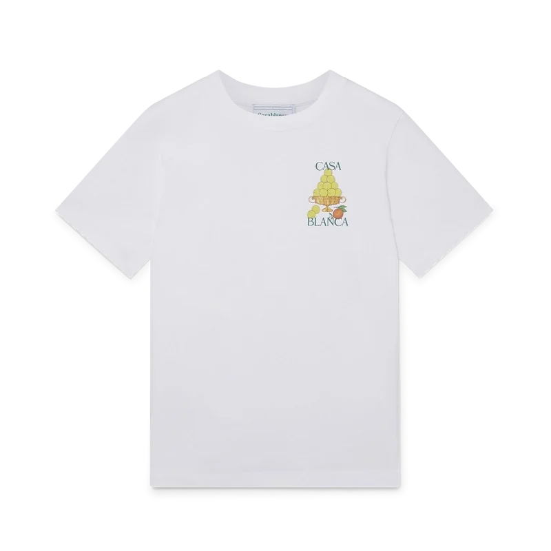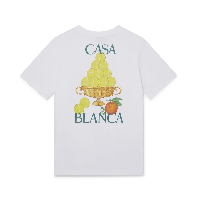 Das Le Triomphe De Tennis T-Shirt ist ein bedrucktes Kurzarm-Modell aus Bio-Baumwolle mit dem ikonischen orangefarbenen Pyramiden-Motiv des Hauses, das für diese Saison neu interpretiert wurde. Mit klassischem Rundhalsausschnitt und Casablanca-Markenlogo.