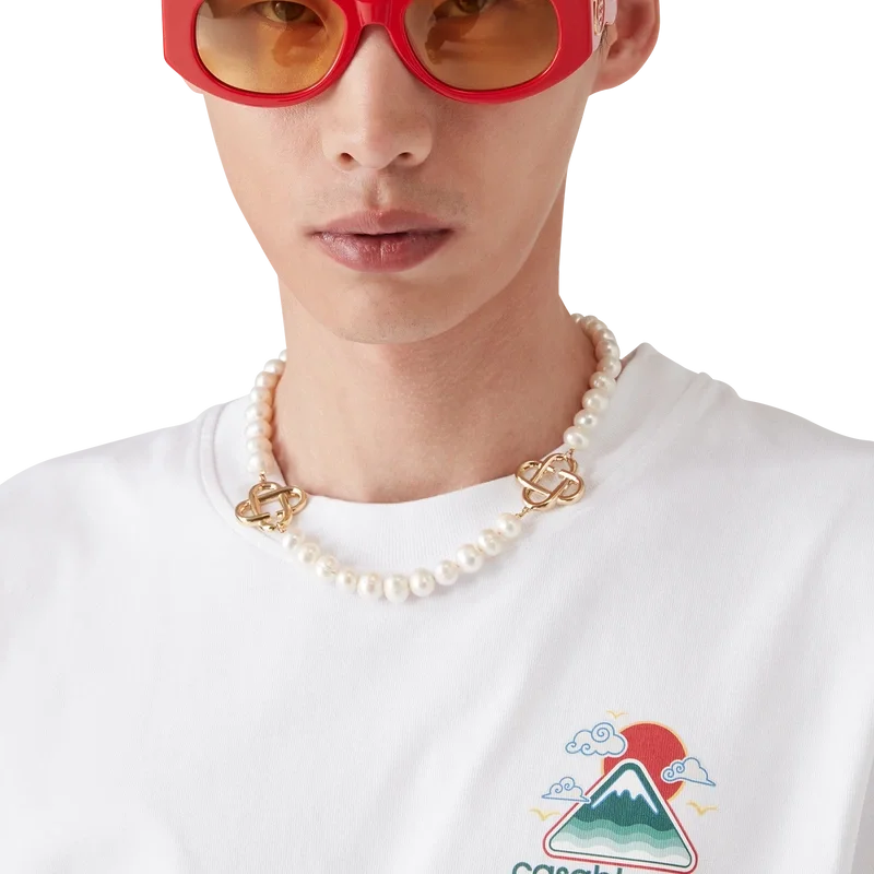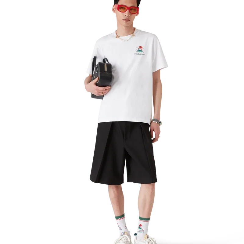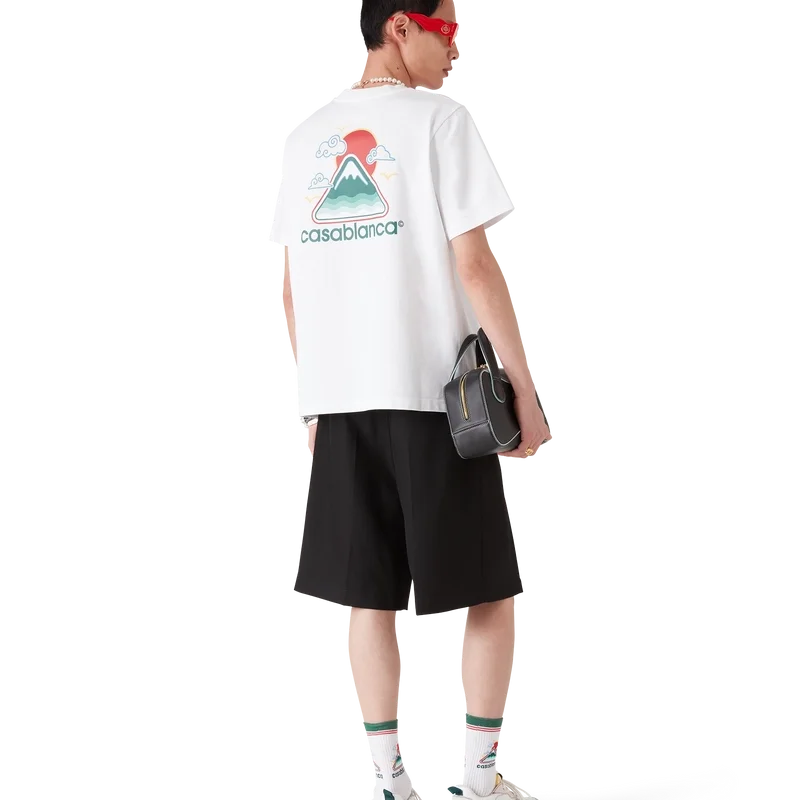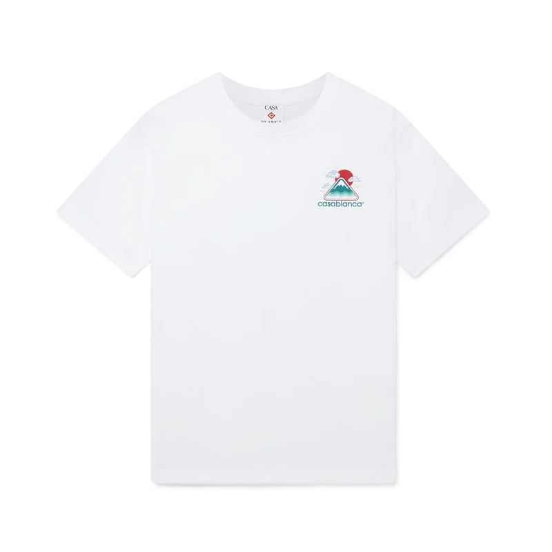 Das „Montagne Ondulee“-T-Shirt ist ein bedrucktes Kurzarm-Modell mit saisonalen Motiven, die von Japans reichhaltiger Ikonografie als Inspiration für diese Kollektion geprägt sind. Mit seinem schlichten Design und den Motiven vermittelt es mit nur wenigen Linien und Farben eine starke visuelle Botschaft und ist damit eines der Aushängeschilder der Kollektion. Es ist aus Bio-Baumwolle gefertigt und verfügt über einen klassischen Rundhalsausschnitt.