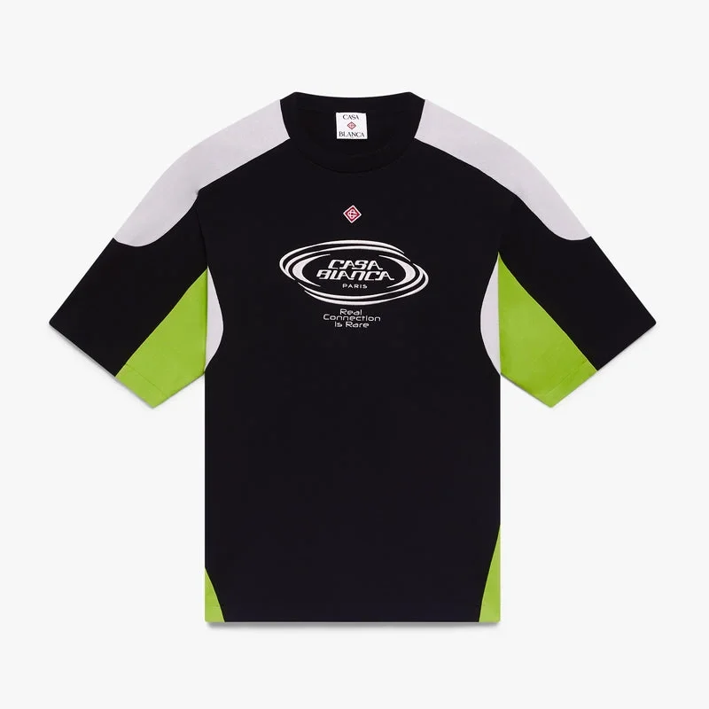 Das schwarz-graue Colourblock-Oversize-T-Shirt mit kurzen Ärmeln besticht durch ein raffiniertes Design mit Colourblock-Muster und dem charakteristischen Diamant-Logo des Hauses. Abgerundet wird es durch einen klassischen Rundhalsausschnitt, das Casablanca-Logo des Hauses und eine Oversize-Silhouette.