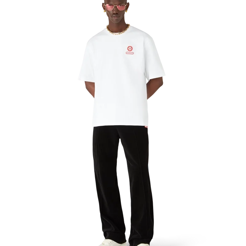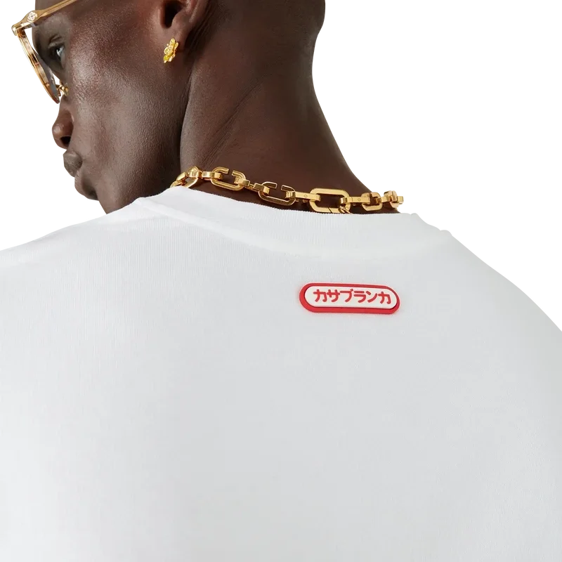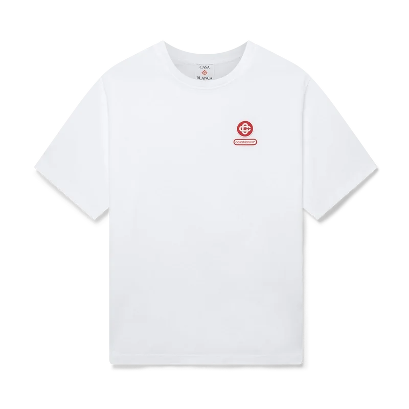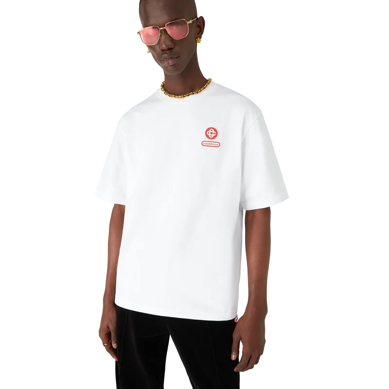 Das Logo-Patch-T-Shirt mit kurzen Shorts ist aus Bio-Baumwollstoff gefertigt und mit dem charakteristischen ineinander verschlungenen CC-Logo des Hauses versehen. Abgerundet wird es durch einen japanischen Casablanca-Logo-Patch auf der Rückseite und einen klassischen Rundhalsausschnitt.