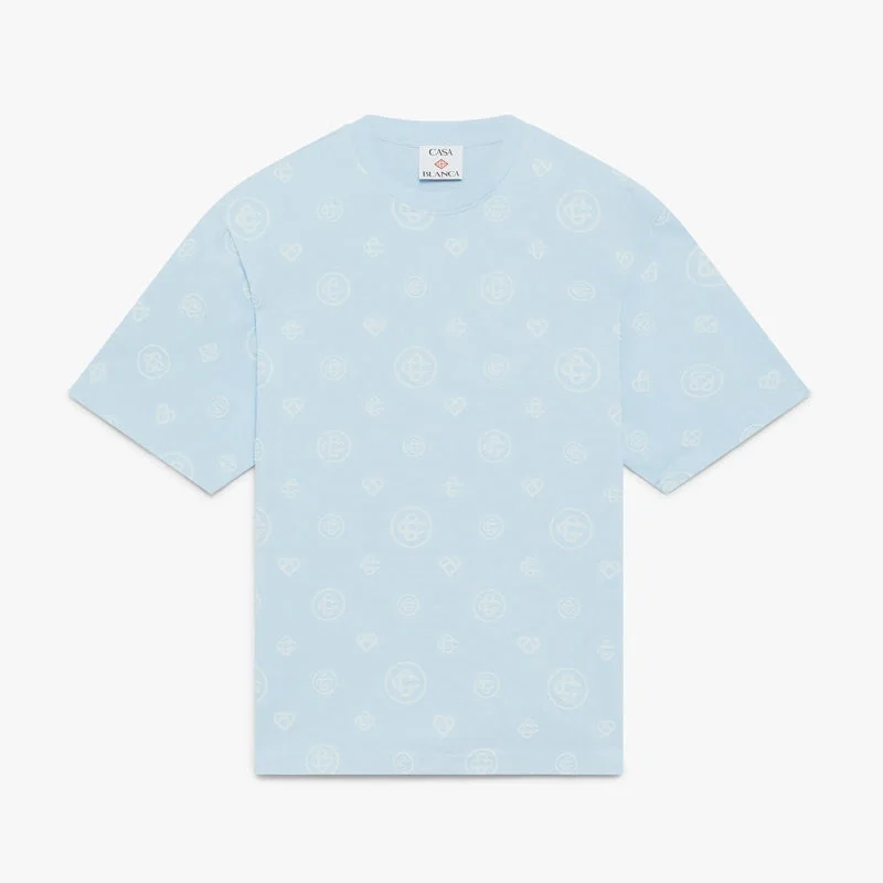 Das blaue Oversized-T-Shirt mit Monogramm-Applikation und kurzen Ärmeln besticht durch sein raffiniertes Design und ist durchgehend mit dem ikonischen Monogramm-Applikationsprint des Hauses verziert. Abgerundet wird es durch einen Rundhalsausschnitt und eine Oversized-Silhouette.