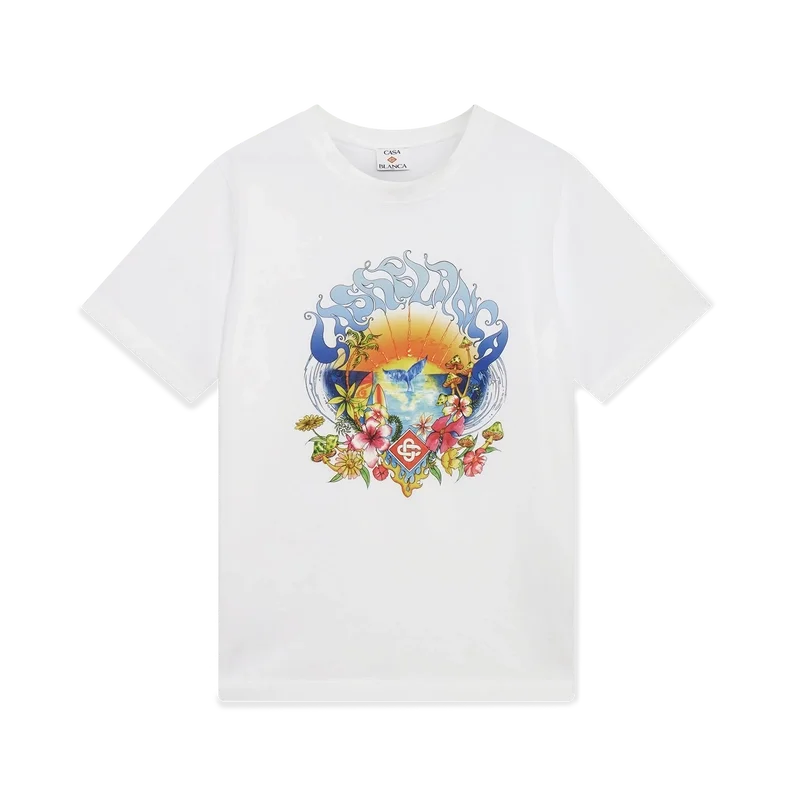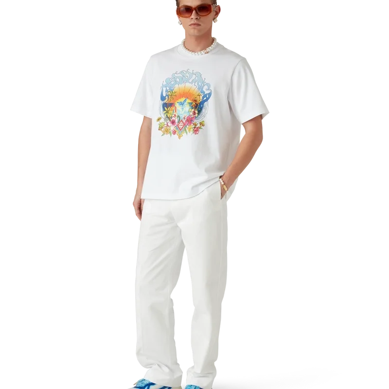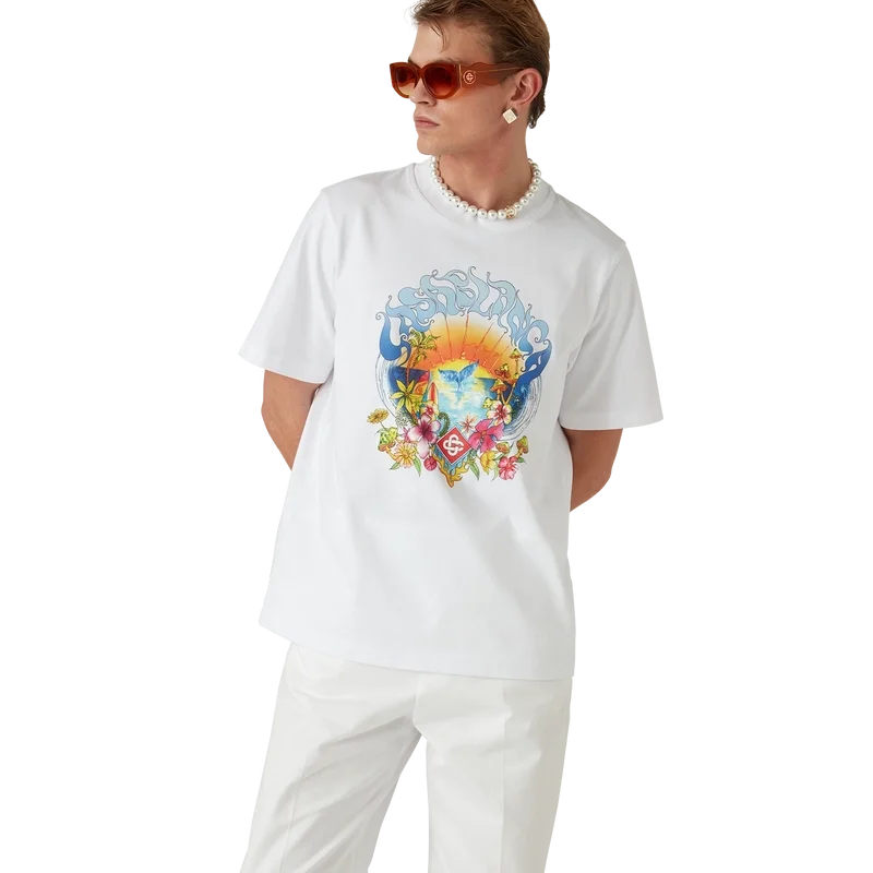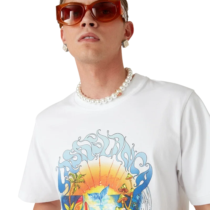 Das Surf Trip T-Shirt ist ein bedrucktes Kurzarm-Modell aus Bio-Baumwollstoff und besticht durch ein charakteristisches Design, das von der Vintage-Surfkultur in Malibu inspiriert ist und Typografie aus dieser Ära verwendet. Abgerundet wird es durch einen klassischen Rundhalsausschnitt.