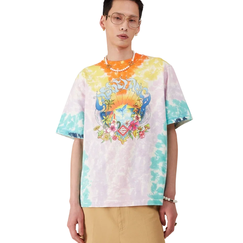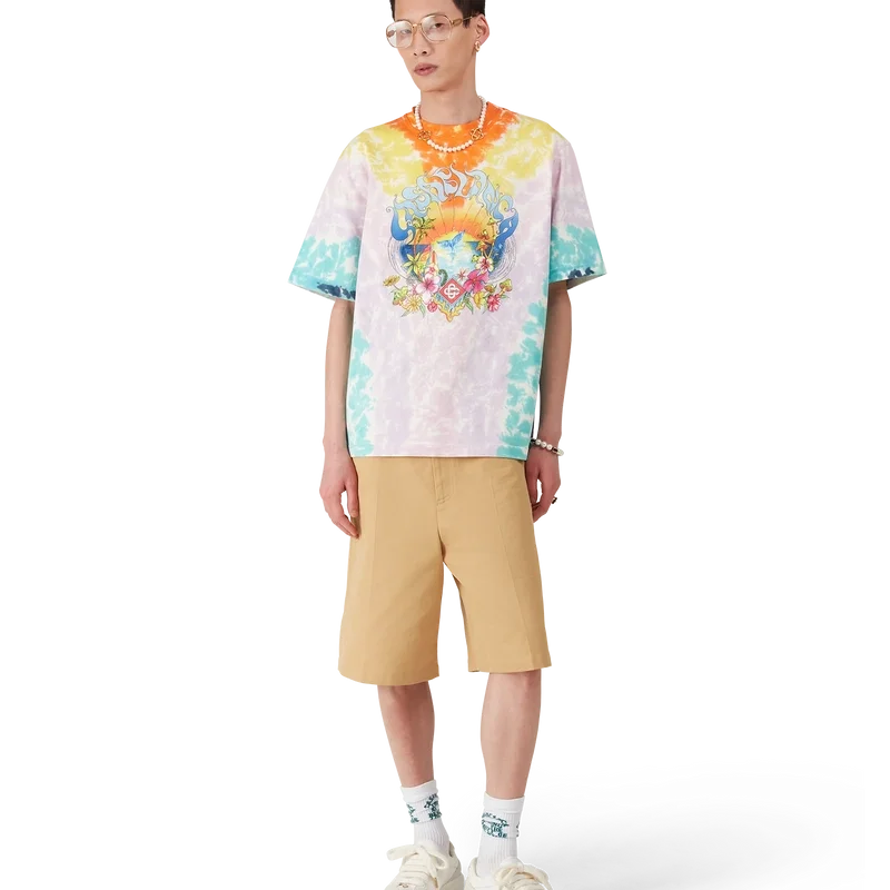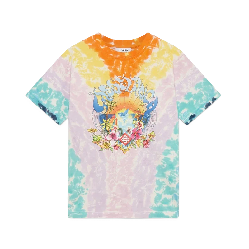 Das Surf Trip Tie-Dye T-Shirt ist ein bedrucktes Kurzarm-Modell aus Bio-Baumwolle mit saisonalen Motiven, inspiriert von der Vintage-Surfkultur Malibus. Es verwendet Typografie aus dieser Ära auf einem Tie-Dye-Hintergrund, der an die Hippie-Kultur anknüpft. Abgerundet durch einen klassischen Rundhalsausschnitt.<!–
