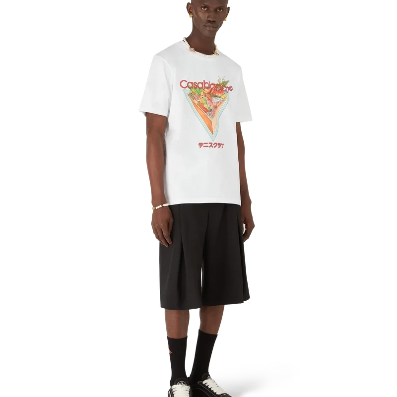 Das Tennis Club Icon T-Shirt ist ein bedrucktes Kurzarm-Design mit saisonalen Motiven – in unserem klassischen Layout –, das die Bedeutung widerspiegelt, die Essen in Japan hat, sowie die Wertschätzung natürlicher Zutaten in ihrer ursprünglichen Form. Hergestellt aus Bio-Baumwolle. Mit klassischem Rundhalsausschnitt.