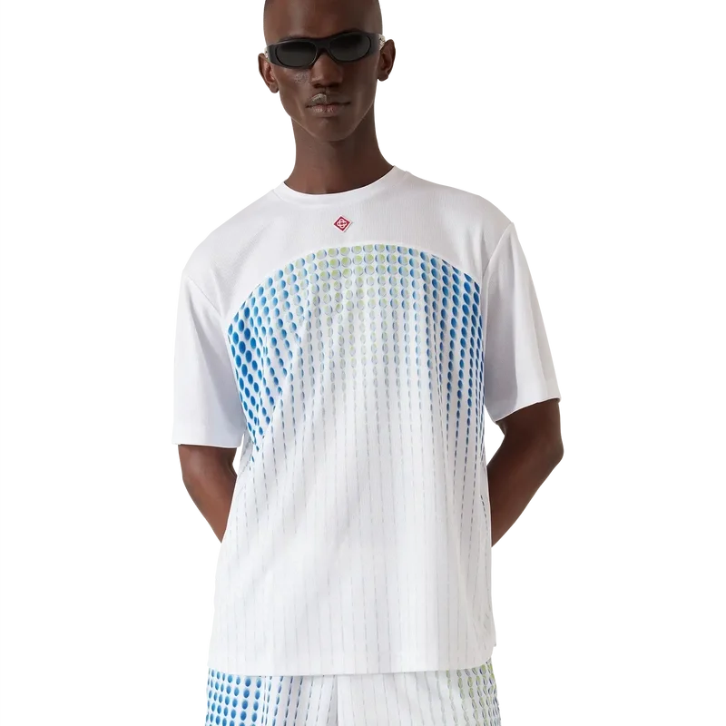 Das Tennis Tech Kurzarm-T-Shirt ist ein bedrucktes Design aus schwerem Birdseye-Mesh mit einem Schulterpanel. Abgerundet durch einen Rundhalsausschnitt und eine lockere Silhouette.